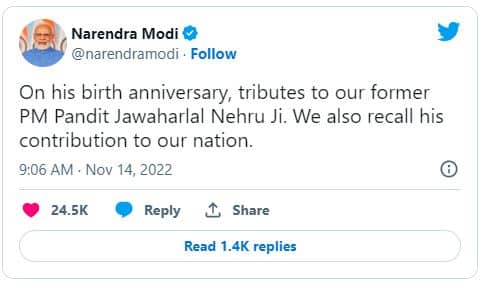 Modi tweeted- On the occasion of his birth anniversary, we pay respect to our former Prime Minister, Pandit Jawaharlal Nehru Ji.