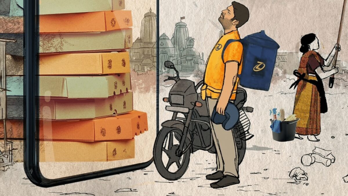 The movie follows Manas’s everyday struggles as his wife Pratima (Shahana Goswami), against his wishes, works to maintain the family financially. The movie shows how different delivery apps are exploiting delivery by showing them different incentives which they can only get through daily maximum deliveries.